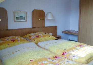 Im Schlafzimmer, mit einem bequemen Doppelbett und Kleiderschrank, kann noch ein Kinderbett aufgestellt werden.